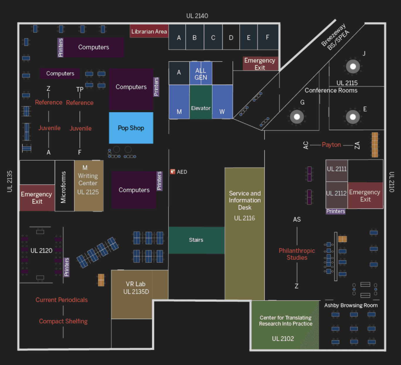 The map is like a game of hide and seek—tucked away under the "UL building" and hidden behind three clicks.